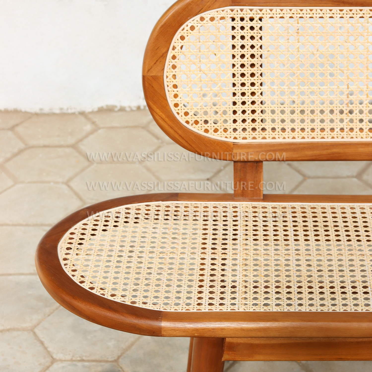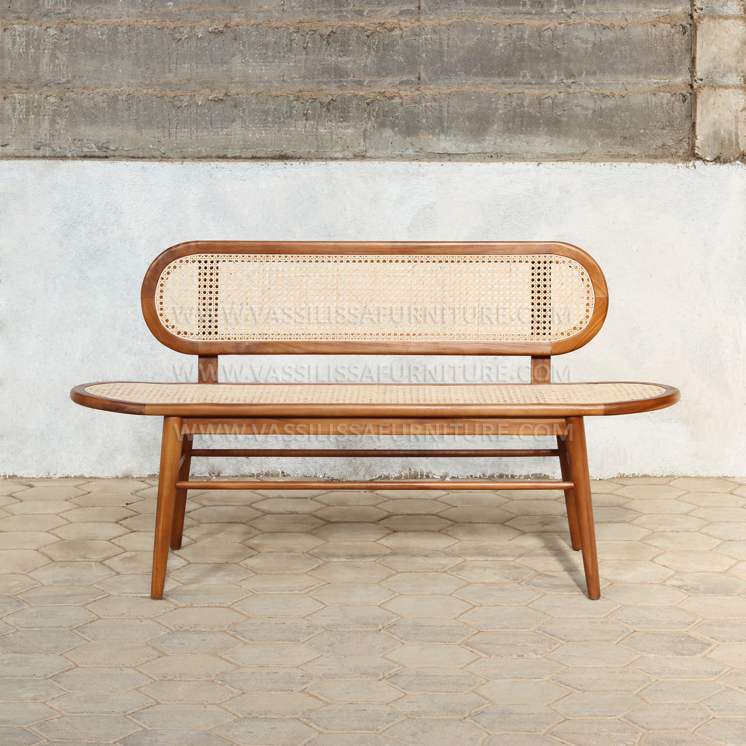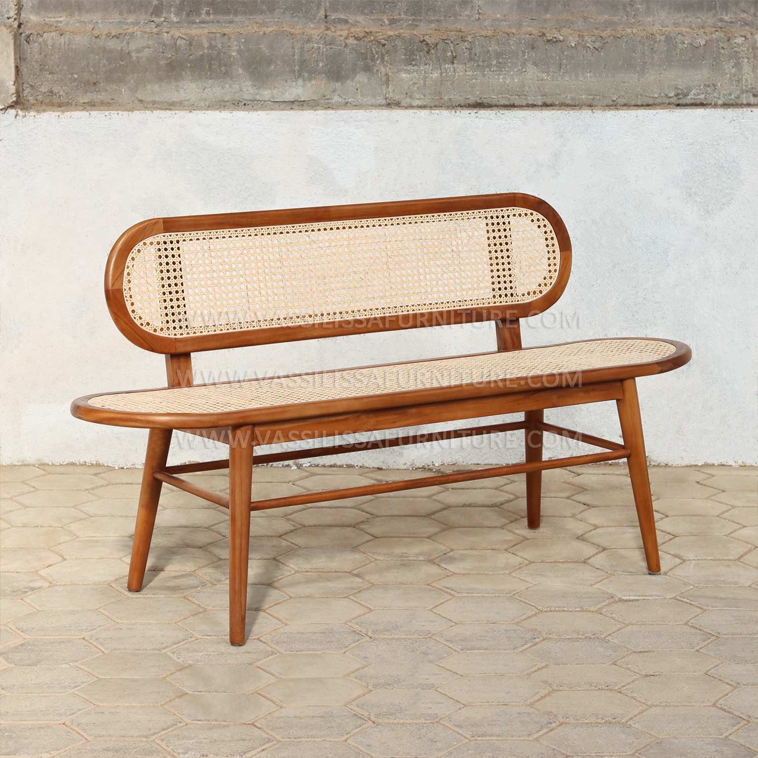 The Alodia bench blends Japandi and Scandinavian aesthetics, crafted from high-quality teak wood for long-lasting durability. Its oval-shaped frame has a seat and backrest covered with finely woven natural rattan, adding texture and comfort. Clean lines and gentle curves accentuate minimalist elegance while maintaining functional support. Designed by a skilled Indonesian furniture manufacturer, this bench complements a variety of modern as well as classic interiors.