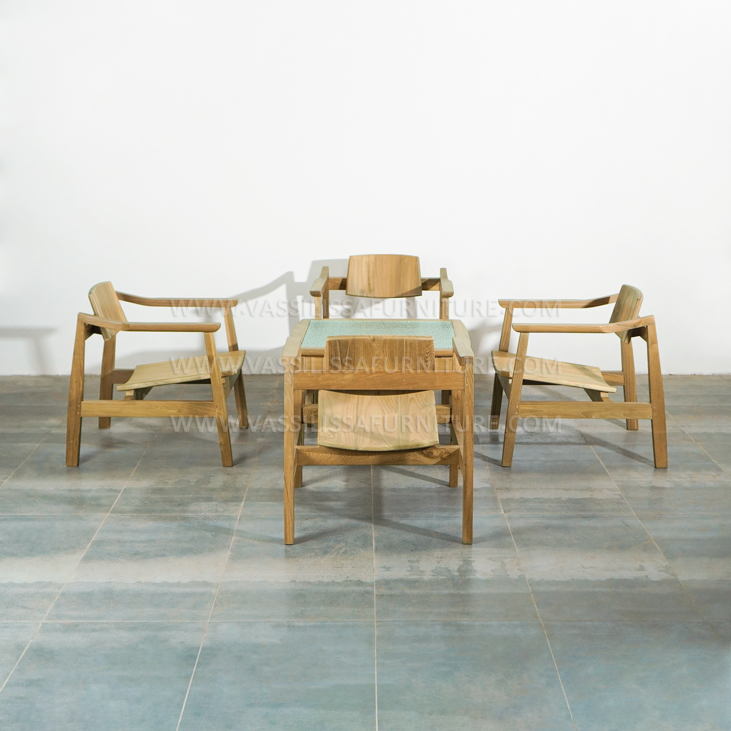 Crafted from high-quality recycled teak wood, this set is not only durable but also environmentally friendly. Furthermore, the use of recycled materials underscores a commitment to sustainability without compromising on quality. Teak wood is famous for its weather resistance and natural beauty. Making it a great choice for long-lasting indoor furniture. Additionally, the rich, warm tones of the wood add a touch of natural elegance to any living room.