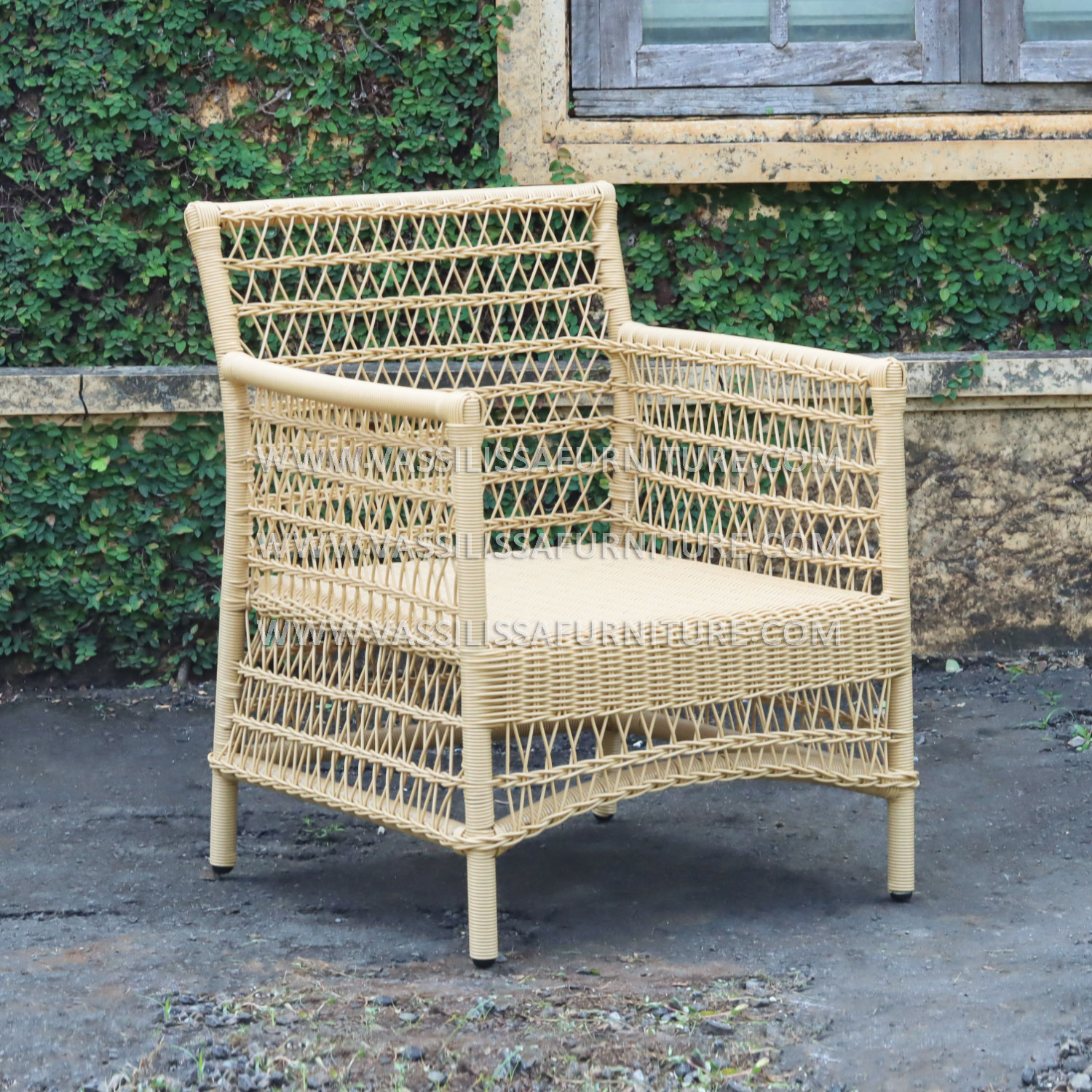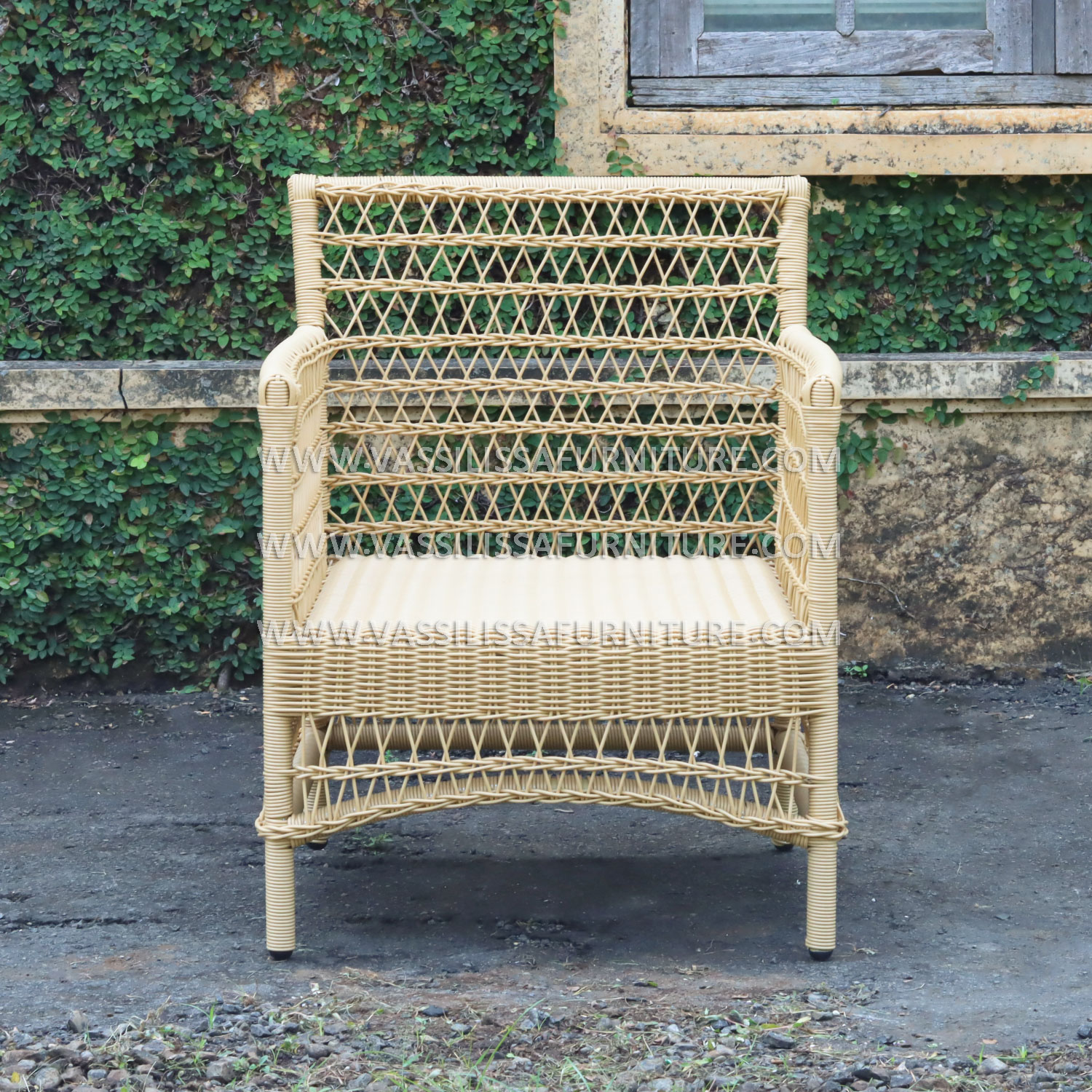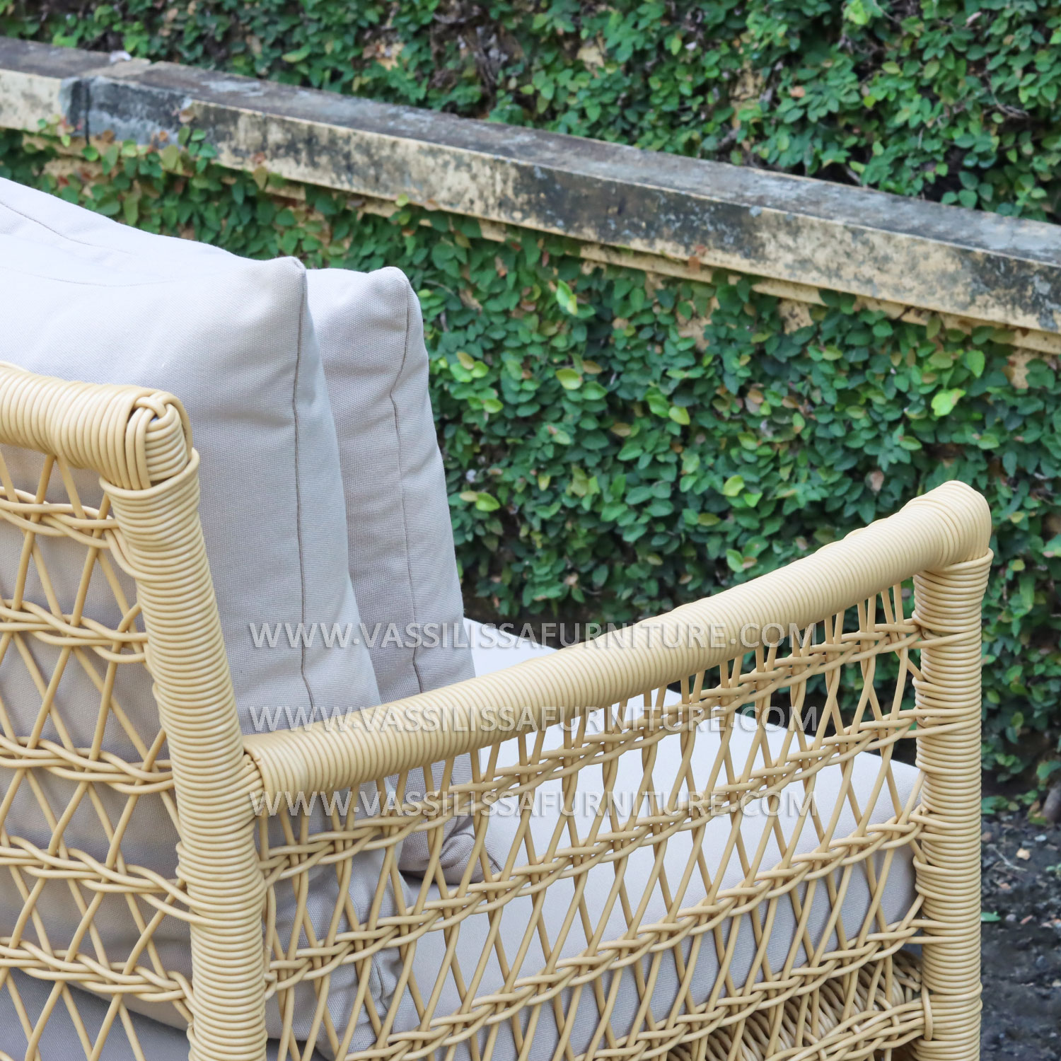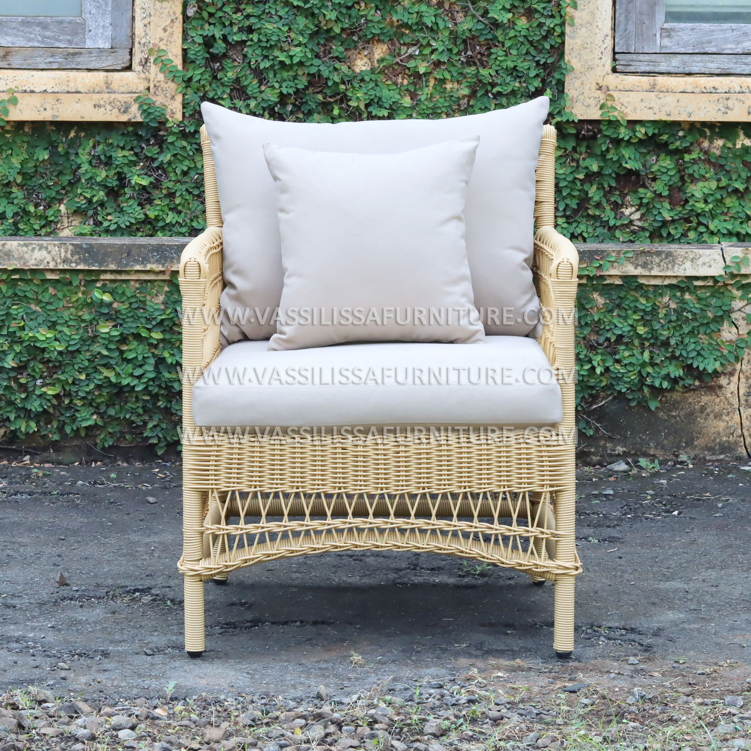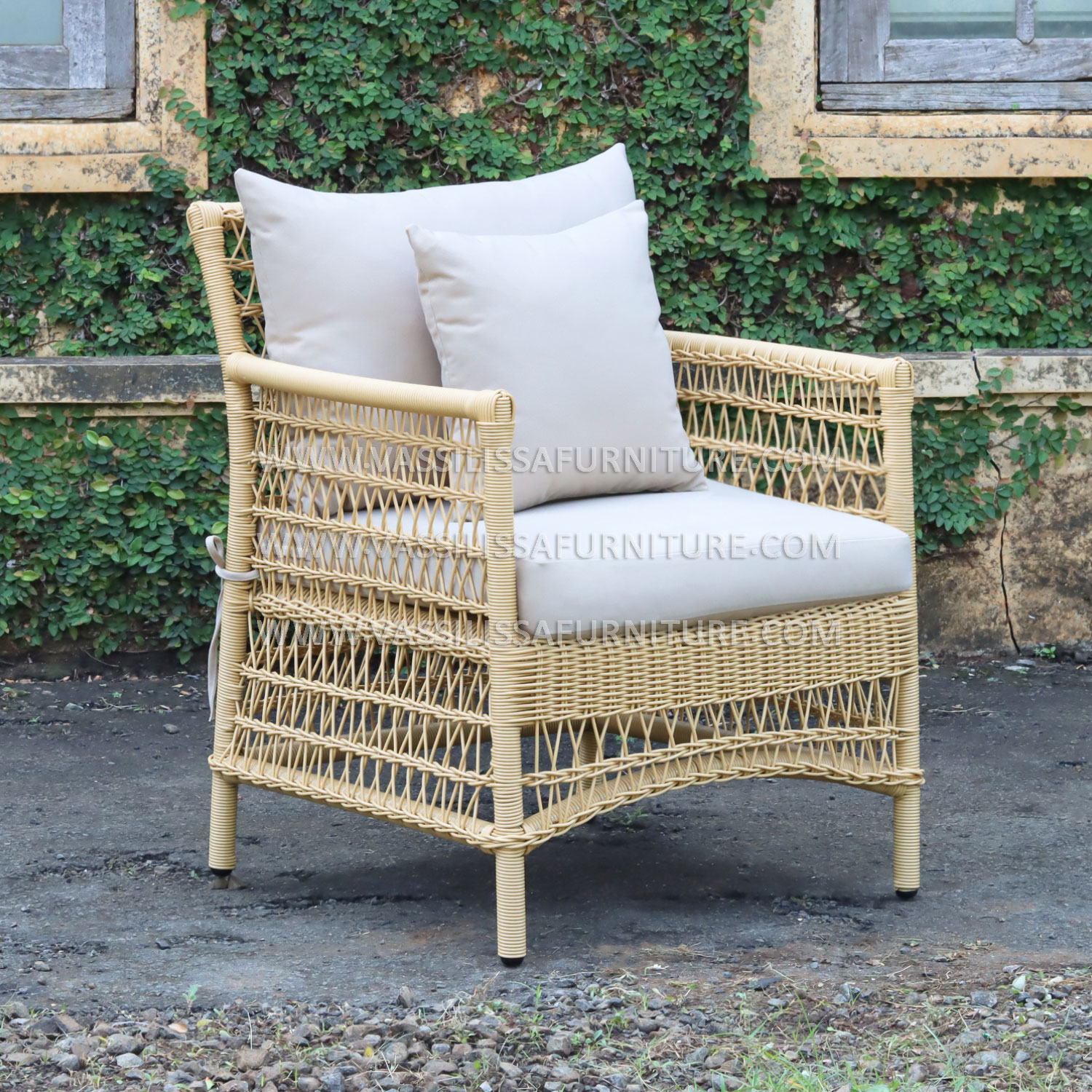 This 1-seater sofa features a strong iron frame wrapped in handwoven synthetic rattan, designed with Japandi-style precision for both aesthetics and function. The seat includes plush cushions and a supportive backrest, offering comfort and durability for indoor or semi-outdoor use. As a product from an Indonesia furniture manufacturer exporter, it reflects a blend of modern craftsmanship and natural textures suited for homes, resorts, or lounge spaces.