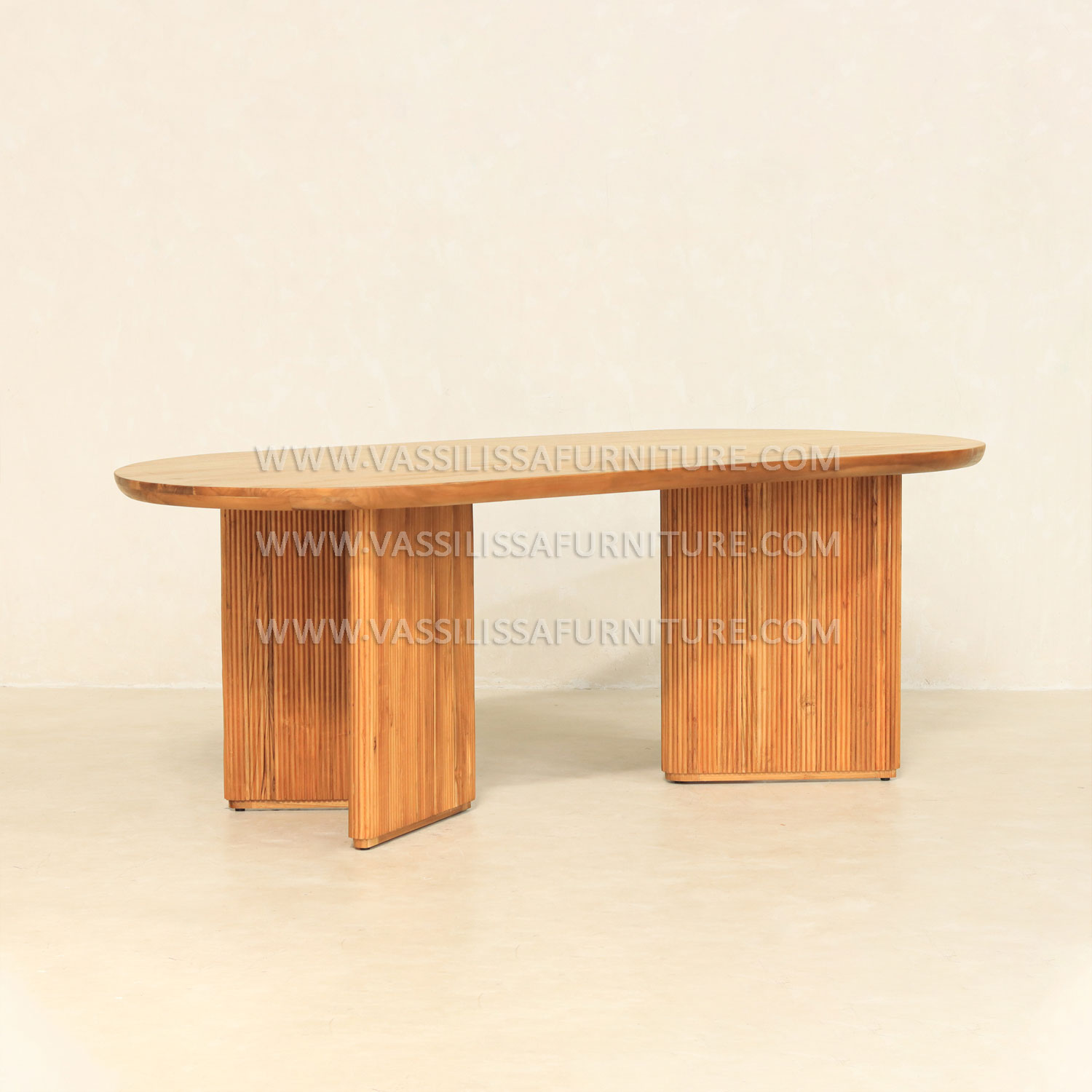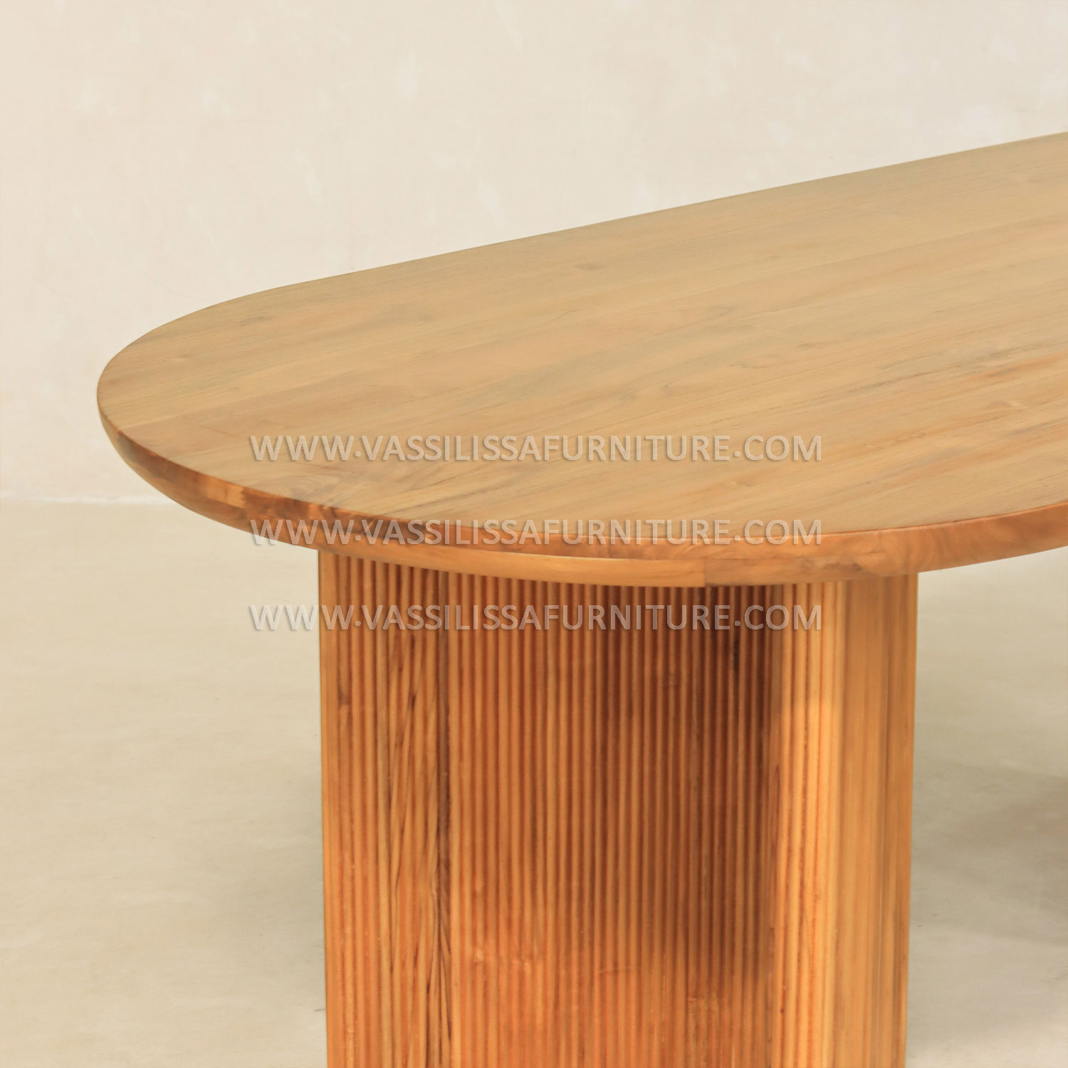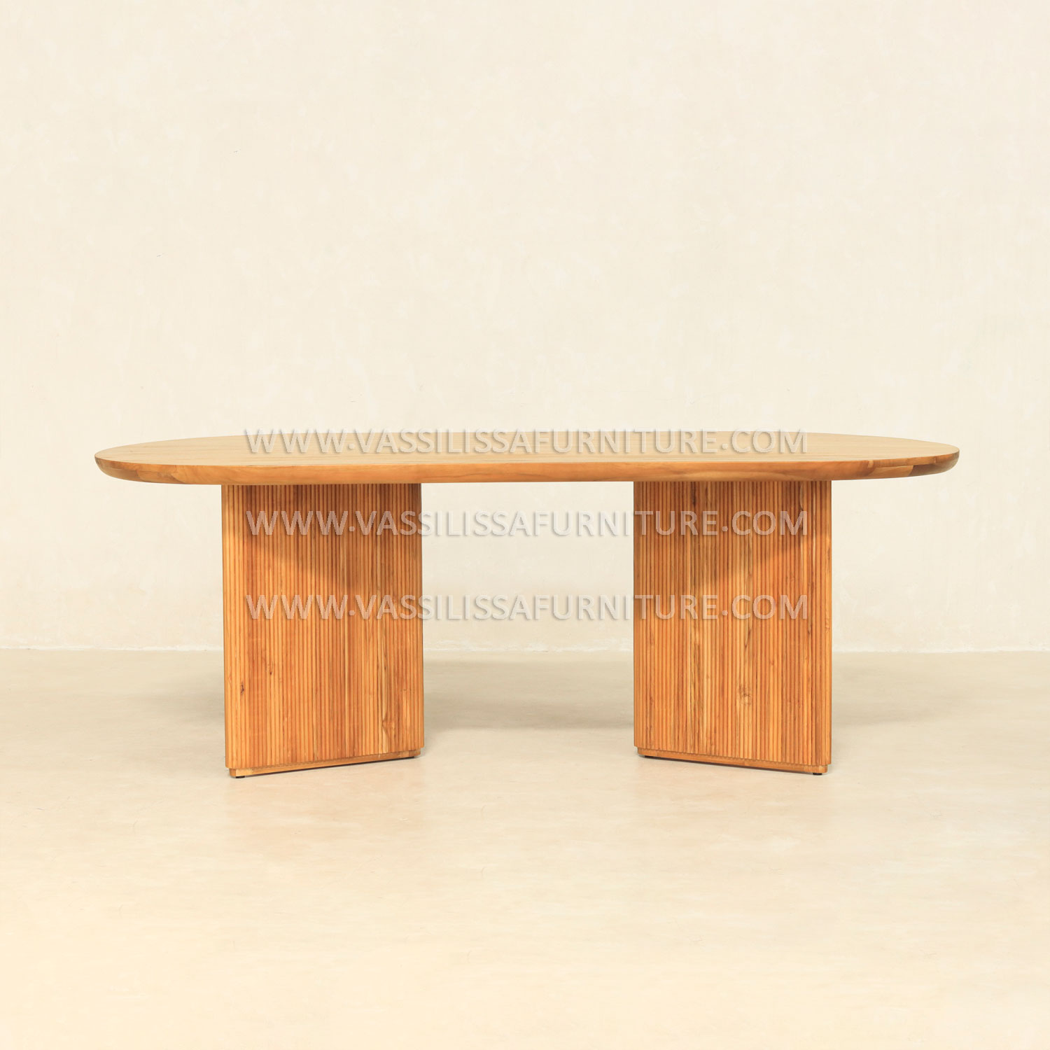 Craftsmen craft this table from premium-grade teak wood, ensuring both durability and longevity. People especially value teak wood for its durability and natural beauty, making it an ideal choice for sustainable, reliable furniture. Additionally, its rich texture and natural grain patterns add warmth and character to any room, enhancing its overall aesthetic appeal. As a result, this table combines environmental consciousness with timeless elegance.