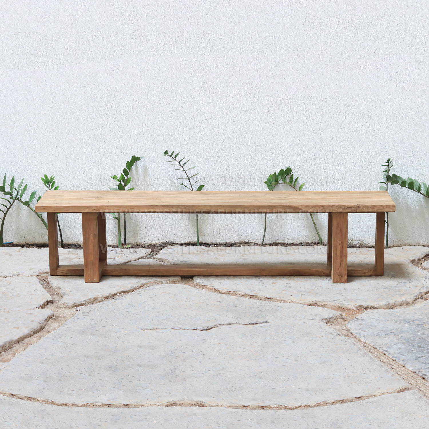 The Valee Bench reflects the simplicity of Japanese style, crafted from recycled teak wood that enhances strength and character. Its wide seating surface can comfortably accommodate multiple users, making it suitable for gathering or relaxing in indoor and semi-outdoor spaces. Natural variations in reclaimed teak wood give each piece a unique texture and finish, setting it apart from conventional designs. Made by skilled Indonesian furniture manufacturers, this bench combines minimalist design with eco-friendly materials for functional and long-lasting use.